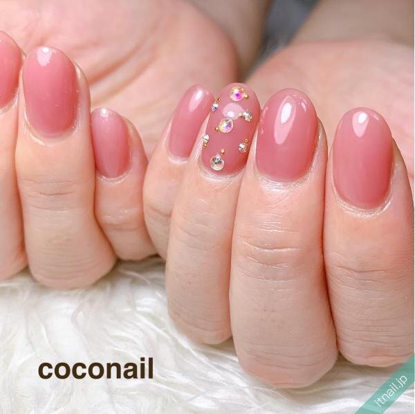 血色感を高める艶っぽピンクは、秋冬の肌寒さをふんわりと温めてくれます。シロップのようなみずみずしさで、潤いを感じる指先に。ポイントでストーンのデコレーションを施せば、愛らしいシンプルネイルが完成です。