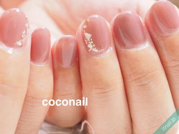 少しトーンを落として、くすみピンクで彩るネイルも秋冬らしい印象。甘さが中和されて大人上品な表情が光っています。シェルのトッピングもさりげなくてかわいいですね。
