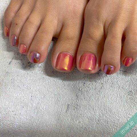 トレンドど真ん中な赤フットネイル