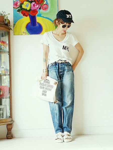 "白Tシャツ✕デニムパンツ"