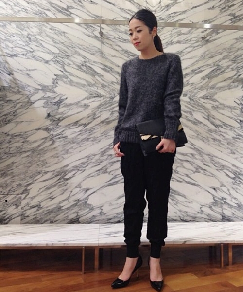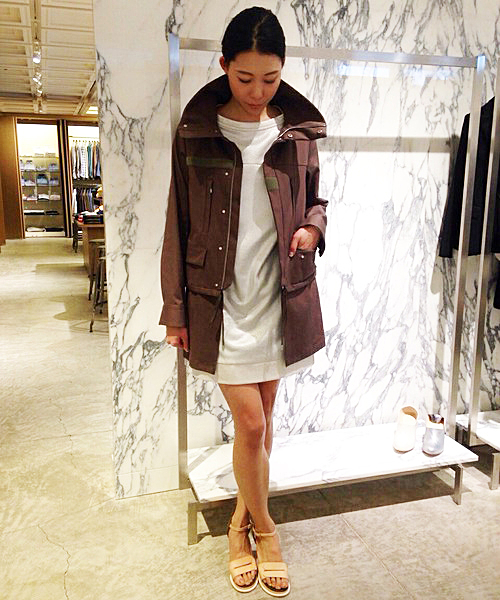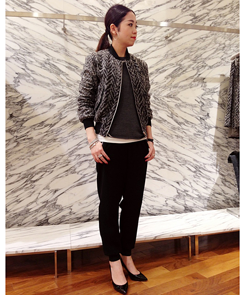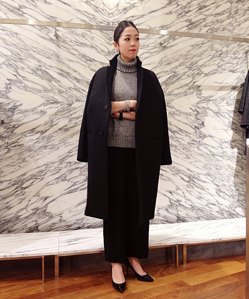 中はワントーンコーデで仕上げれば、すっきりと見えて背高効果も。
