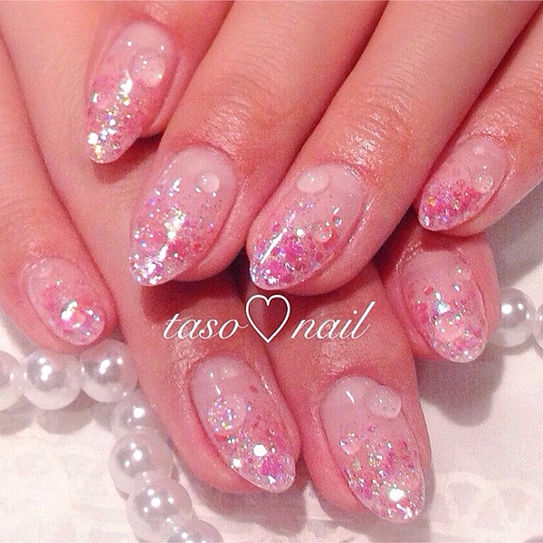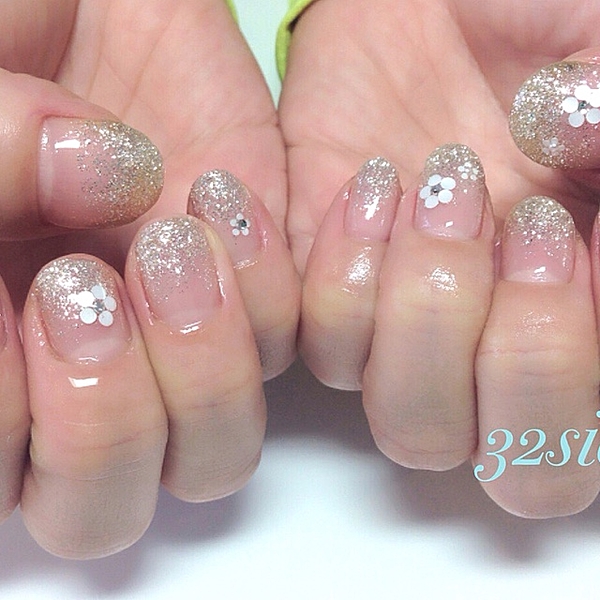 シンプルなフレンチネイルもラメを使用する事で、華やかにまとめる事が出来ます。