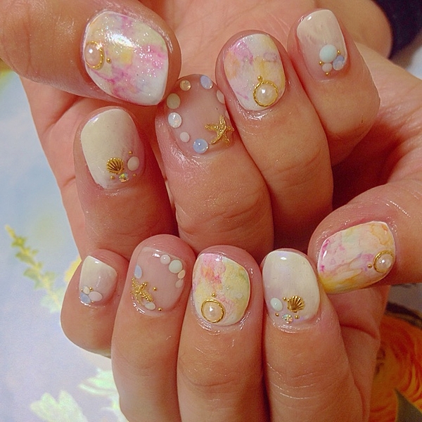 風船や花柄にも見え、ポップな夏らしい印象のネイルになっています。