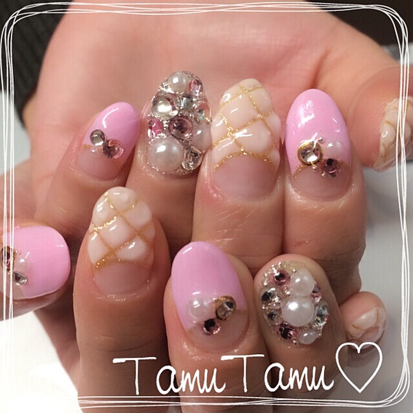 ベージュに細かいストーンやパールを合わせる事で、品のある大人ネイルに仕上げる事が出来ます。
