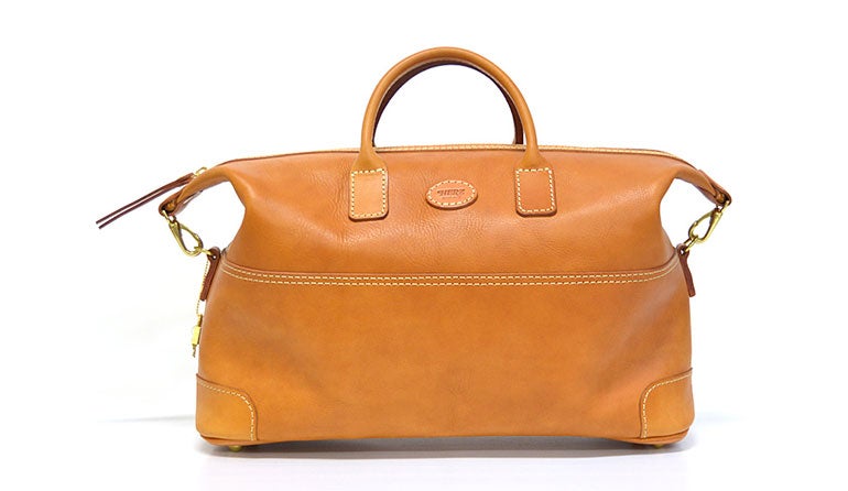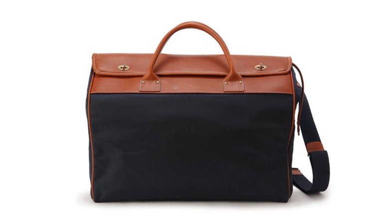 レザーフラップがおしゃれなボストンバッグ。シンプルなデザインながら、使い込むほどに味わいを増すナチュラルレザー、シルクのように上質なナイロン、留め具などの真鍮金具の機能美により、大人の風格を漂わせている。ビジネスシーンの出張とも相性抜群だ。