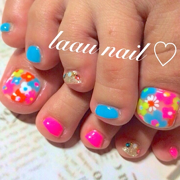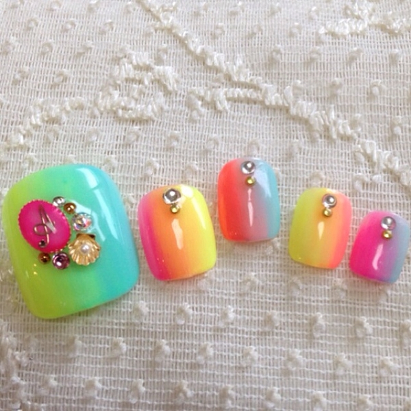 挑戦してみたいけどなかなかハンドネイルでは挑戦しずらいビビットカラー。可愛いけど手元には少し派手すぎますよね。派手だからこそフットネイルで可愛い足元に変身してみない?サンダルから覗かせたい可愛いフットネイルデザインを紹介します♩フットネイルでみんなの視線を集めちゃおう~!