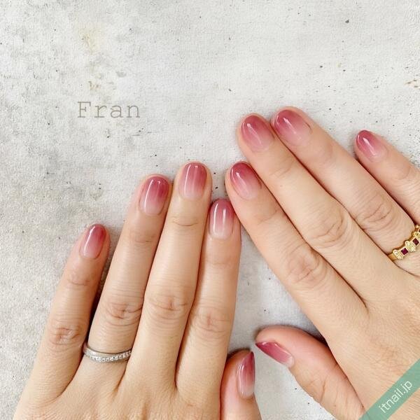 先端にかけて色味が濃くなるグラデーションデザイン。こちらも手元から浮かないナチュラルなスタイルだからまといやすいですよね。上品な秋冬ネイルとしてイチオシです。