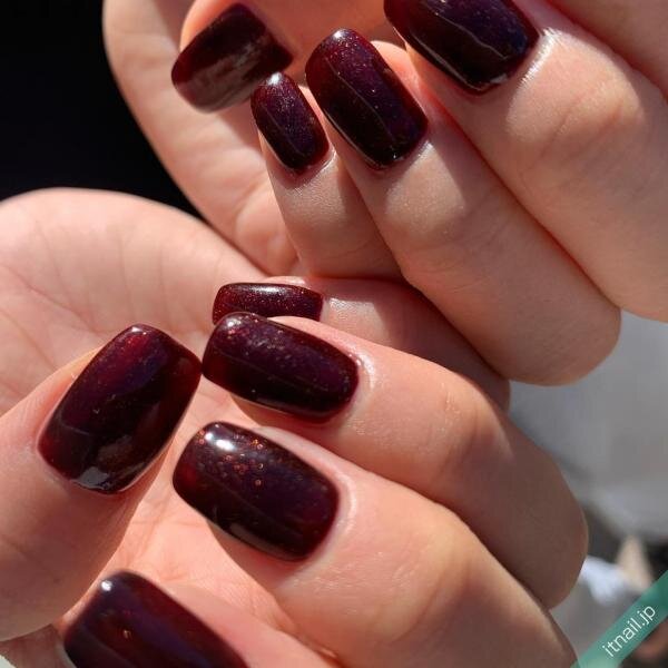 こちらは深みのあるボルドーですが、深みの中に繊細なラメの輝きがチラつく複雑な魅力のカラー。シンプルなワンカラーでも十分にスタイリッシュです。