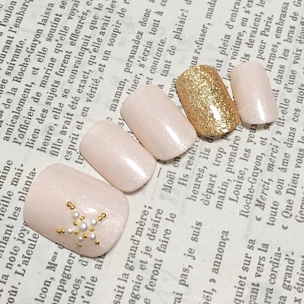 根元のスタッズやスターフィッシュが、上品な夏ネイルにしてくれますね