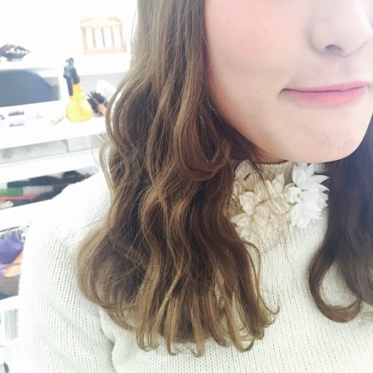 コテで巻いたような質感のくっきりしたウェーブではなく、少し細かめの横波ウェーブが特徴的。欧米女性が、こぞって夢中になるヘアスタイルなんです。
