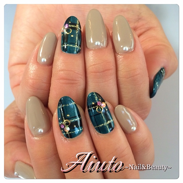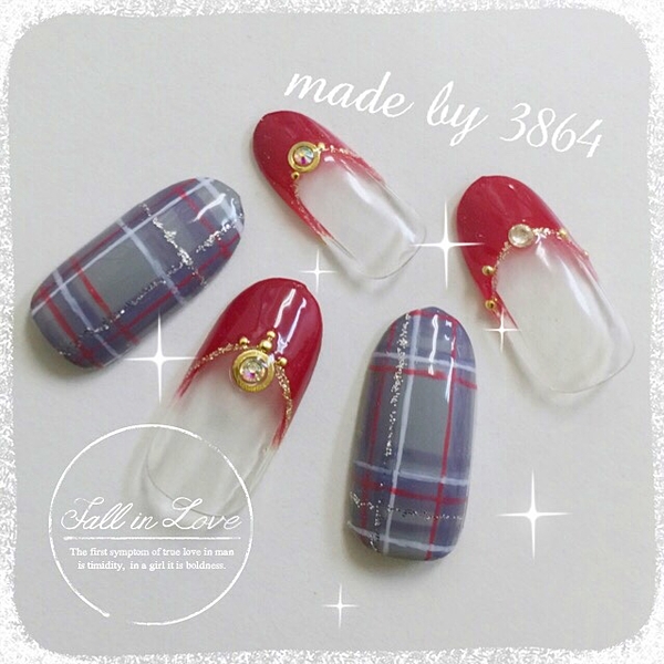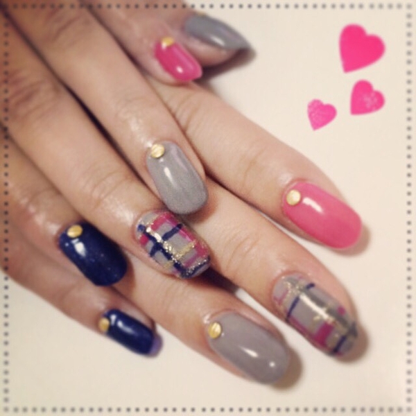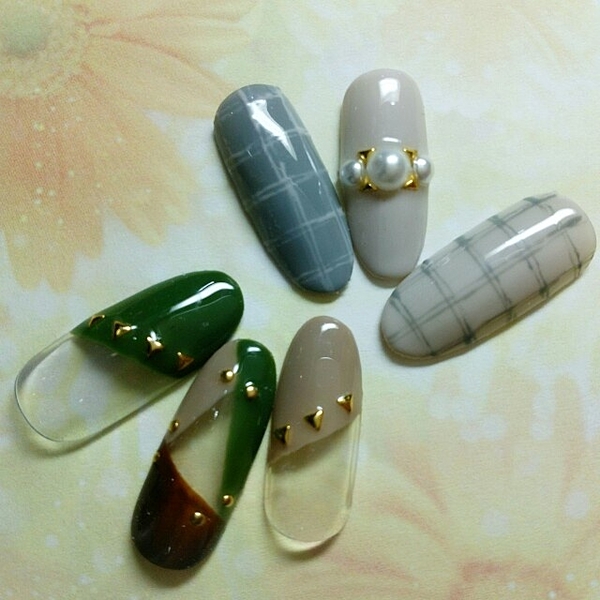 秋といえばチェックですよね。チェック柄は落ち着いててどこかいい子ちゃん風で可愛い♡秋しかできないネイルを楽しみましょう*