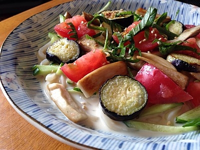 トマトたっぷり!豆乳クリーミー冷やしうどん
