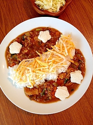 ■小松菜とナスと冷凍豆腐と人参入りのヘルシーカレー