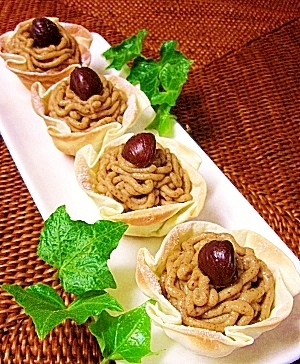 楽天レシピ:「餃子の皮で!! 栗のミニタルトモンブラン♪ 」より