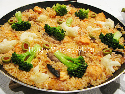 ■かつおだしでサーモンパエリア