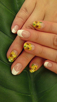 クリアネイルにあわせて、ゆびさきにひまわりが咲きました。