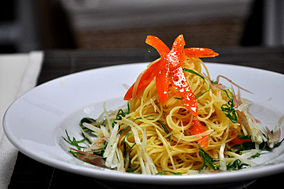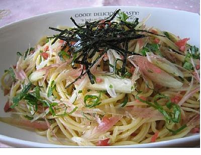 大葉、みょうが、ショウガ くせモノ揃いのシンプルパスタ