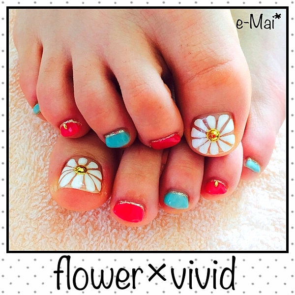■気分も明るく!フットネイルにぴったりな華やかカラー☆