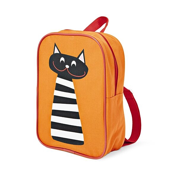 リュックはオレンジでパキっと。