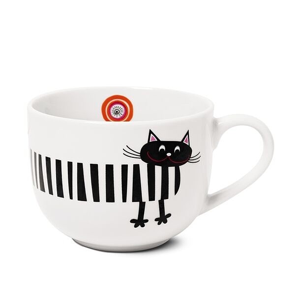 ネコの縞模様がユニークなデザインのマグカップ。
