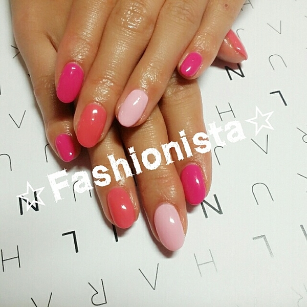 コーラルピンクで深めのグラデーションにした大人かわいいネイル♪