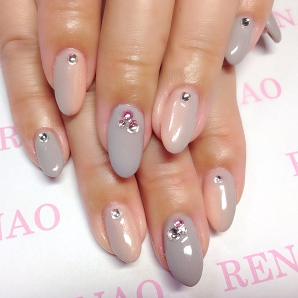 今日のお客様ネイルその1(^o^)/なんかグレーを使ってみたいけどどうかなぁ?変かなぁ?どうしたらいいかなぁってかんじだったのでグラデをおすすめ!グレーのグラデは馴染みが良くてよいよー! http://t.co/cWHOKQGYez