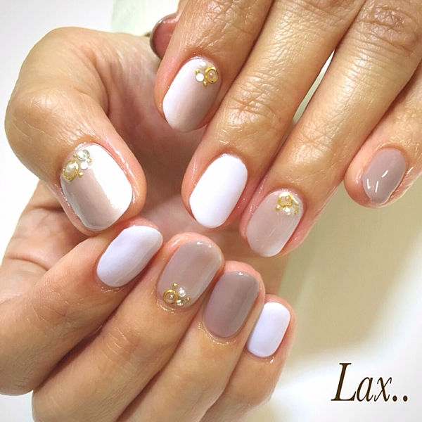 アイボリーの1色塗りをベースに、小さいゴールドスタッズを根元にちょこっとのせて・・