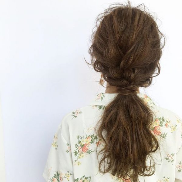 編み込みルーズポニーテールのやり方