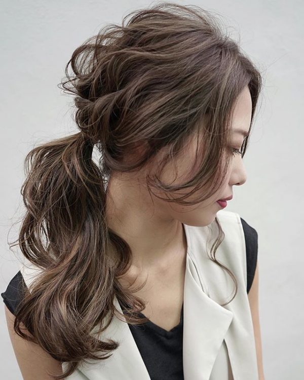 トップのカール感を崩さずにおくだけで、ドレッシーな印象すらある大人っぽポニーテールが簡単にできちゃいますよ。