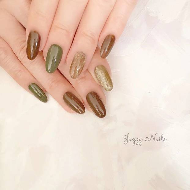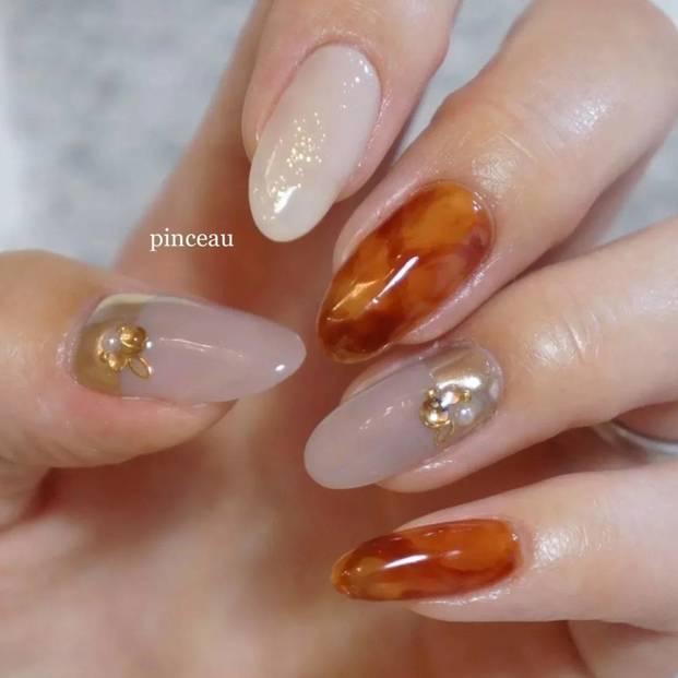 30代女子におすすめのブラウンネイル①ワンポイントにマーブル模様