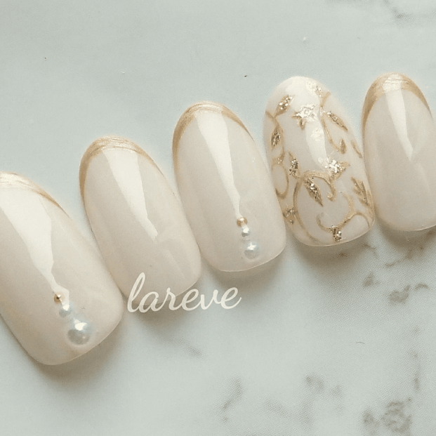 ベースを肌なじみのいいシックなベージュを選ぶことで、ゴールドが上品な印象に仕上がりますよ♡