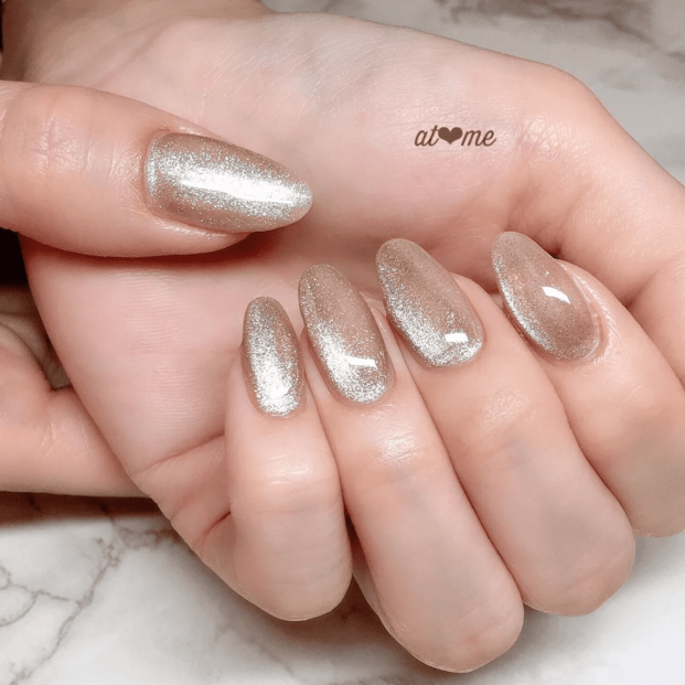【ゴールド編】40代におすすめ冬ネイルデザイン②グレージュ×スタンピングミラー