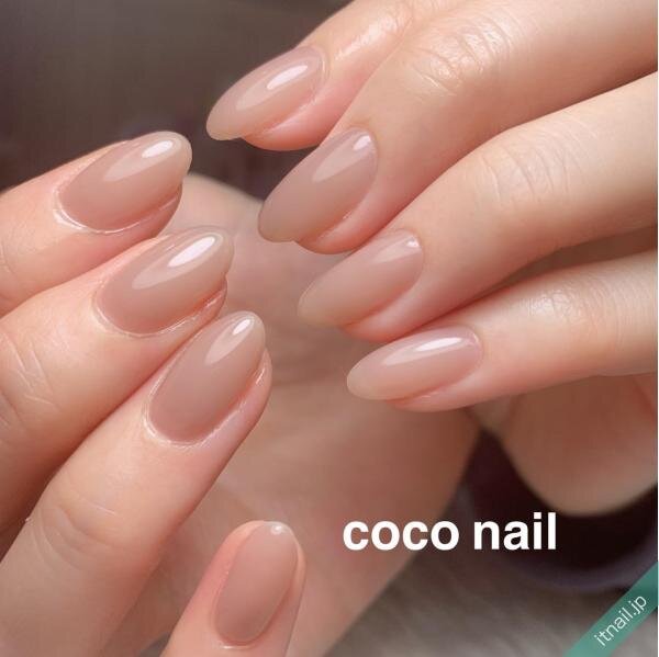 お肌に近いピンクよりのベージュは、血色も良く見せてくれます。クリアのフレンチを数本入れる事で上品過ぎず、遊び心もあるデザインです。