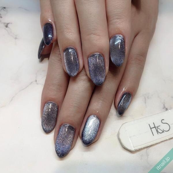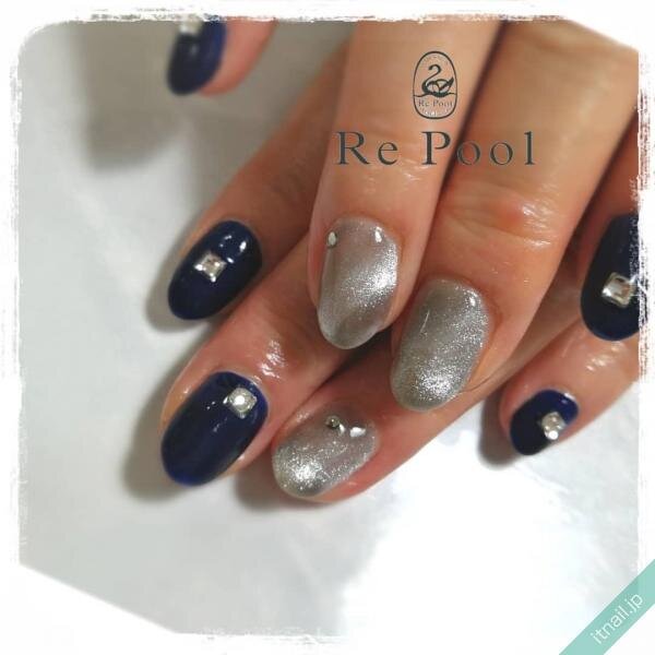 高貴なイメージがあるネイビーには、洗練された印象のシルバーがお似合い。二色の良さがかけ合わさった上品なネイルにまとまります。シルバーのマグネットネイルにシンプルな深みネイビーを合わせたバランス感も素敵。