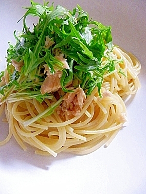 楽天レシピ:「めんつゆで簡単味付け☆ 水菜とツナの和風パスタ 」より