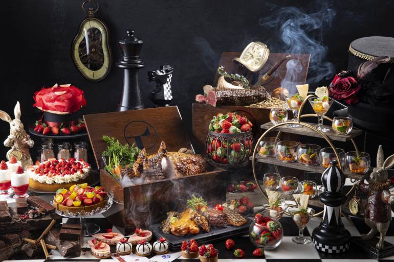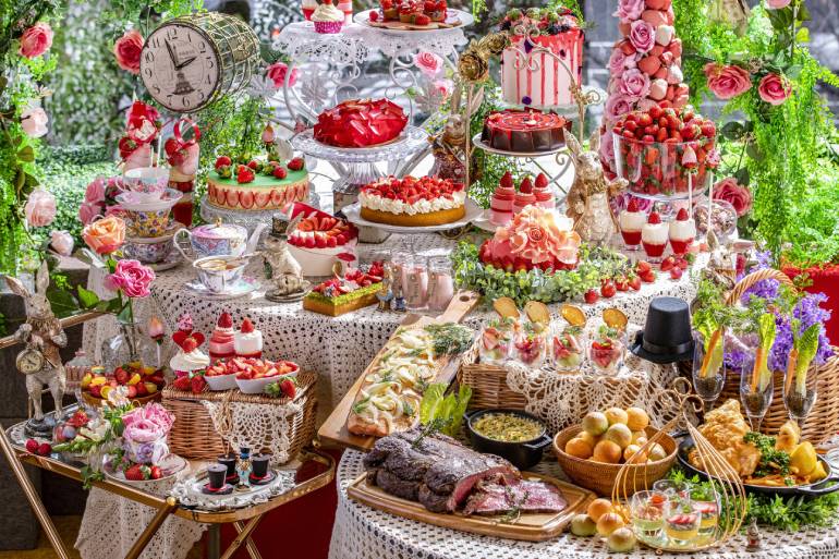 ホテル1階「マーブルラウンジ」では12月26日より『RSVP アリスからの招待状』をテーマに、20種類以上のいちごスイーツとフレッシュ苺、「ローストビーフ」のカーヴィングを含む15種類のランチアイテムが揃うスイーツ&ランチビュッフェも開催。