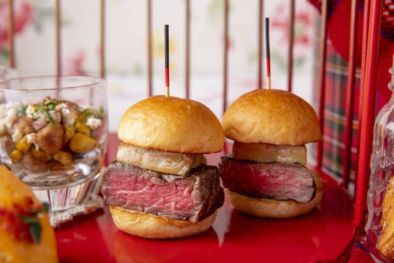 そのほか、ステーキにフォアグラとトリュフソースが贅沢な「ロッシーニバーガー」、スモークサーモンをギリシャ風ヨーグルトソースと共に味わう「スモークサーモンのクロワッサンサンド」、アリスのテーマに合わせた「きのこの森のキッシュ」やスペード型の「アンチョビとブラックオリーブの塩パン」など、7種類の食事系パンも味わいたい。