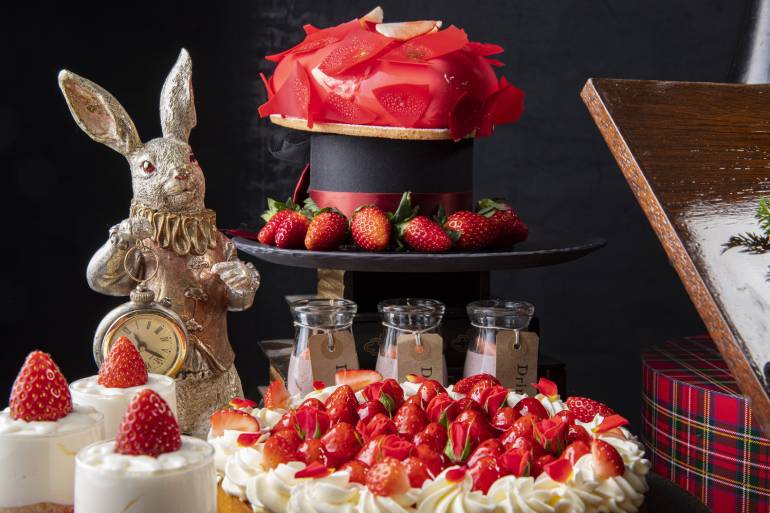 「マーブルラウンジ」で12月26日(土)より開催されるストロベリースイーツフェアに合わせ、アリスの物語に着想を得たそれぞれの料理人たちが贈る点心、グリルとパンのランチ&アフタヌーンだ。