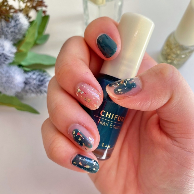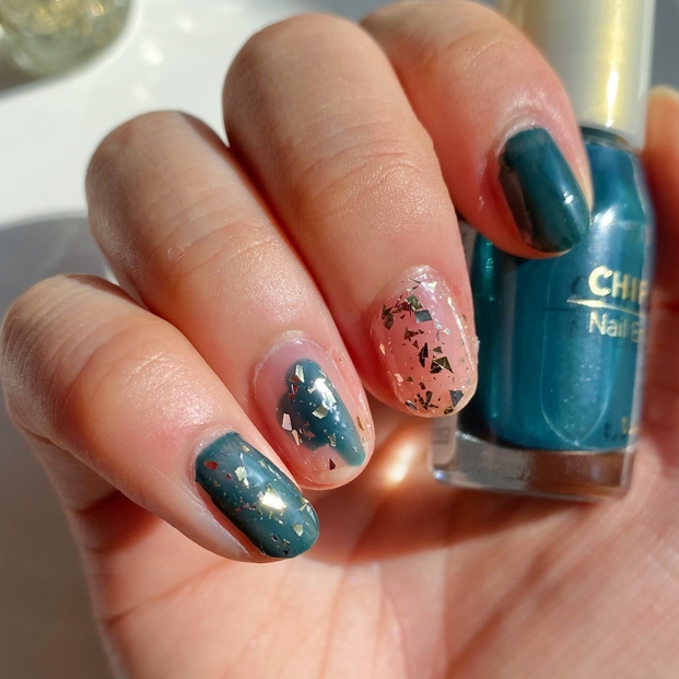こちらは872番というカラー。深い青緑の色味が高見えする上に、一度塗りでこの発色です。