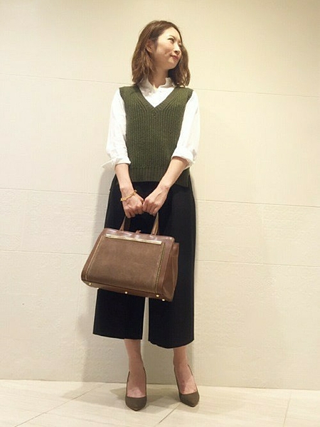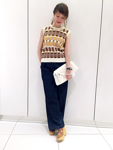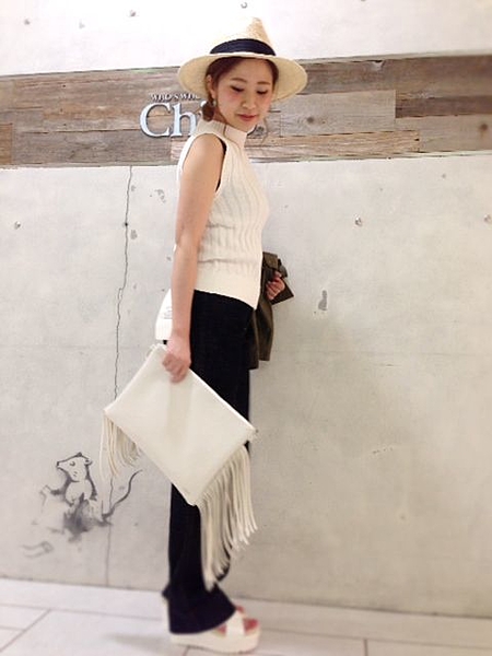 ノースリーブニット×ワイドパンツの