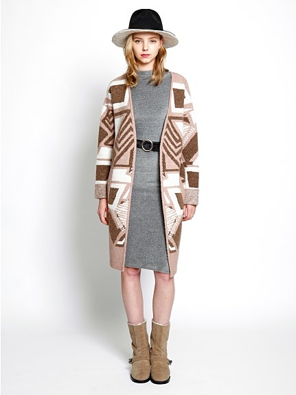 幾何学模様のジャガードガウンでこなれ感をプラス。