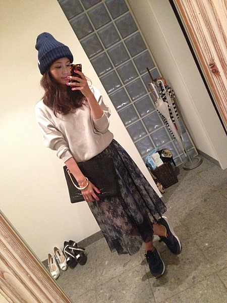 スニーカーでちょっぴりハズすのもおしゃれ。