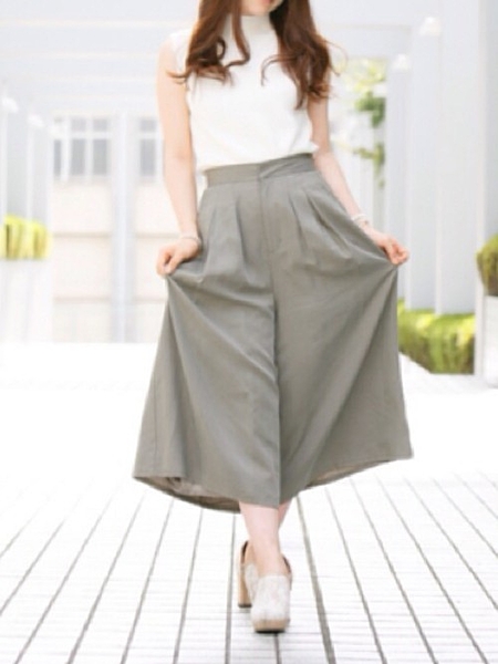 ニット素材のガウチョが新しい。ウエスト部分もゴムで履きやすくなっています。あえてトップスもゆるっとしたデザインのものを合わせると、トレンドのノームコアスタイルになり今年っぽくて◎。