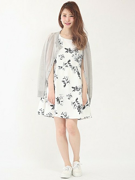 花柄とロングカーデを合わせると甘すぎず大人な雰囲気を出してくれます。