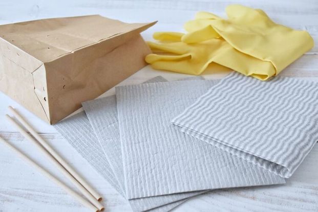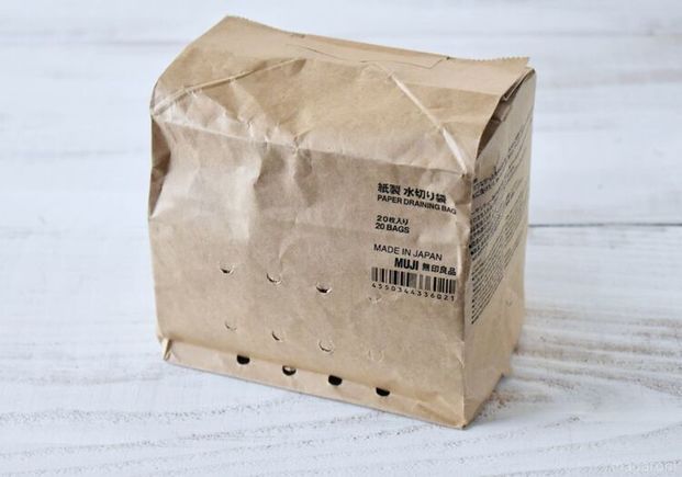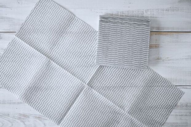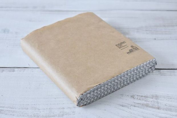 食器やテーブルを拭いたり、キッチンまわりのお掃除に便利な「キッチンダスター」。無印良品では業務用のダスターを8枚ずつ小分けにし、クラフト紙1枚で巻いただけの簡易包装で販売されています。