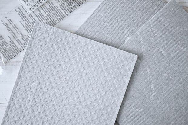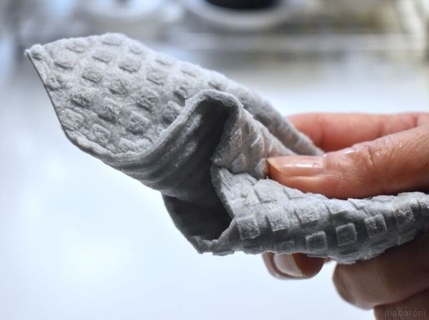 洗って繰り返し使え、耐久性や吸水性、速乾性にすぐれた不織布を使用。カラーはグレーと白の展開があり、ともにキッチンに馴染みやすい色合いです。