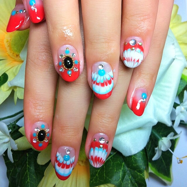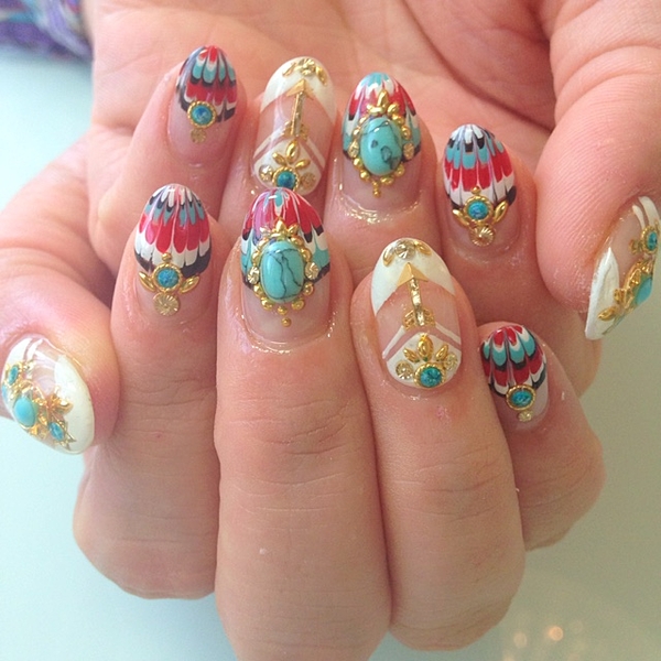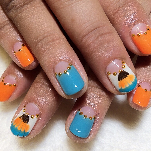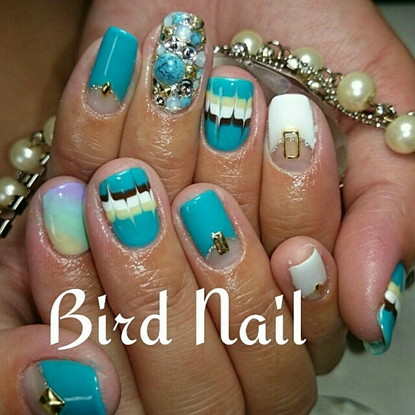 先端ピーコックの可愛いネイルデザインは、使用したターコイズブルーに合わせて持ってきた