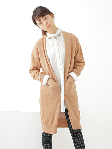 KOE/¥6,469税込(30%OFF)ロング長袖ニットカーディガンです。柔らかくもちもちとした風合いのアクリルナイロン素材でゆるふわなコーディネートに。