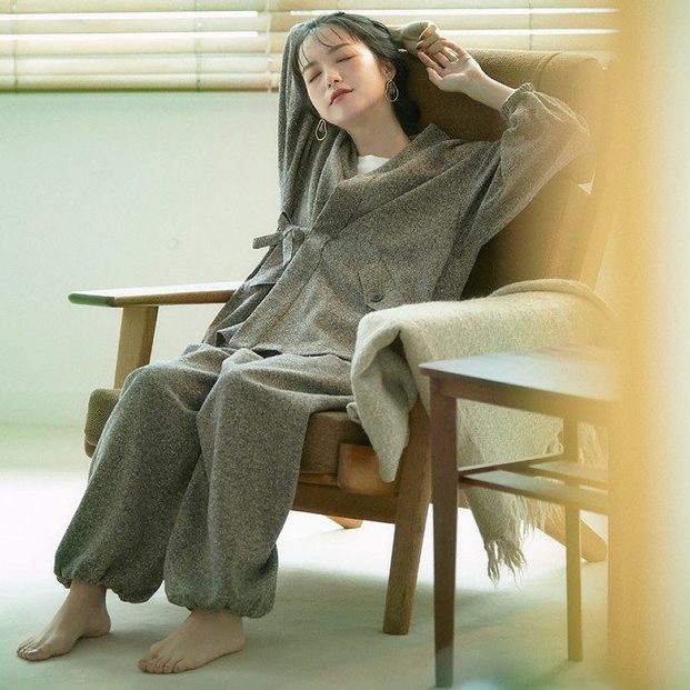 生地はツイードが用いられているため、部屋の中だけでなく、ワンマイルウェアとしてもお役立ち。裏面には起毛加工が施されているので、温もりとふんわりとした肌当たりの両方を実感することができます。
