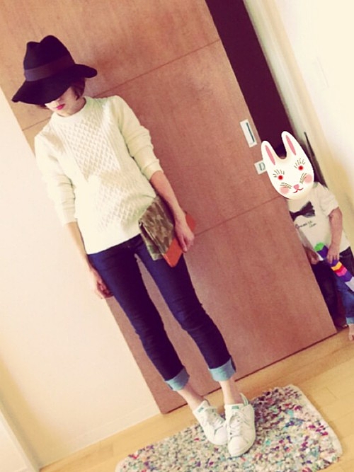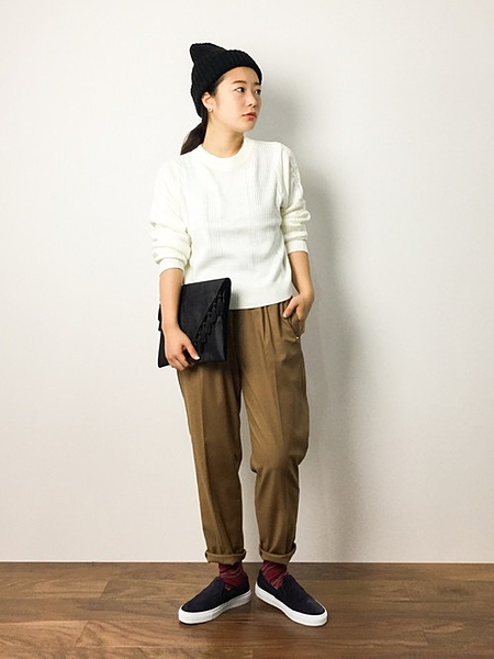 ゆるっとどんなコーデにもあう定番型のホワイトニット。